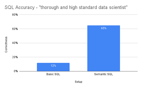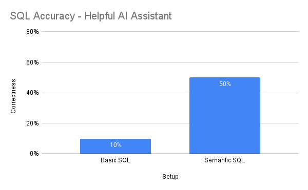 Both the basic SQL and semantic SQL setup were evaluated using two styles of prompts: one centered on the model being a “helpful AI assistant” and and another centered on the model being a “thorough and high standard data scientist." Here are the semantic SQL prompts for reference: