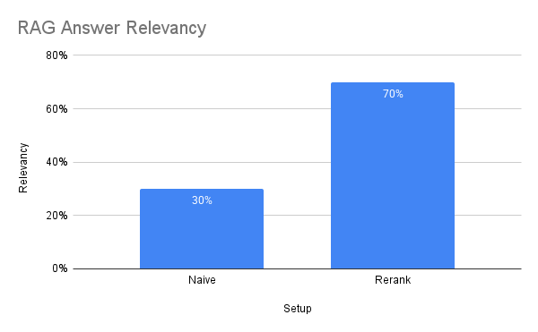 This is a RAG-specific evaluation metric from DeepEval. With a default threshold of 0.5, it determines how relevant a model’s output is when compared to the input question[25]. The RAG model component was evaluated using 50 questions that I determined had answers in the document store database.